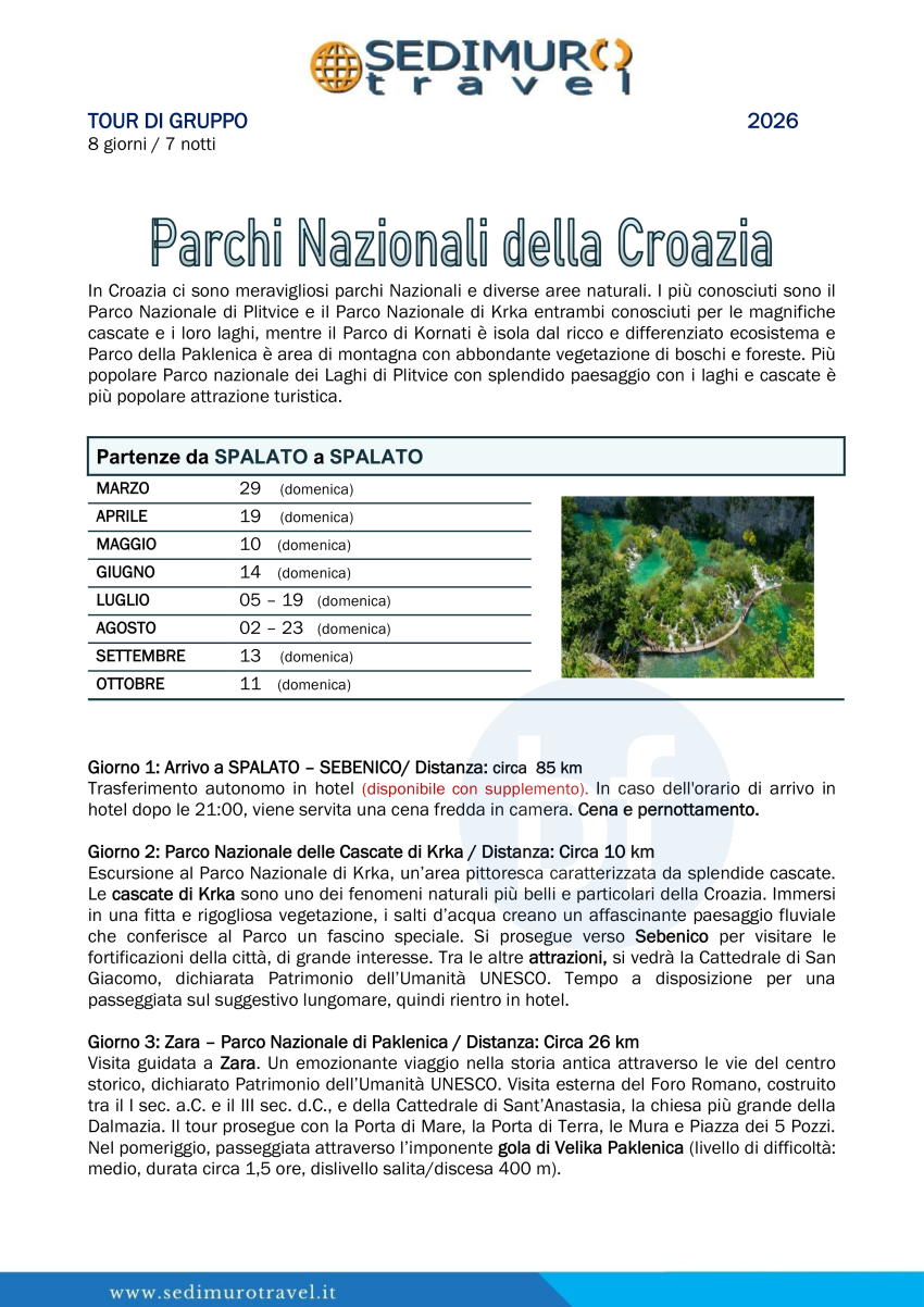 Parchi Nazionali della Croazia da Spalato 8 giorni